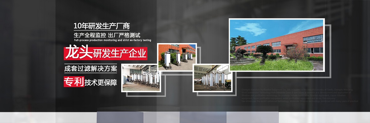 成都愛爾純凈化設備有限公司,坐落于美麗的天府之國,成都市溫江區海峽科技園工業區,專業從事于過濾、凈化技術的研發(fā)應用,產品有保健酒過濾設備、白酒過濾設備、白酒凈化設備、水凈化設備等,公司引進世界先進過濾分子技術,結合專業技術人員資深多年實踐經驗,解決酒類、飲水類后期處理難題。 業務涵蓋,酒類過濾:除混濁沉淀,澄清處理、除苦味,異雜味,新酒催熟陳化處理 、除塑化劑、固形物、雜醇油、甲醇及各類含量超標后期處理。 水類:軟水、純凈水、礦泉水、飲料等凈化處理。用心為客戶提高生產效率、提高產品質量、降低生產成本、環(huán)保減排而開發(fā)創(chuàng)新,堅持奮斗。 公司至誠每一位客戶,“誠信服務,客戶至上”為宗旨,為客戶要求,用心凈化每一點滴,我們都將以精準的數據化設計、嚴格的設備制作質量把關、快捷專業的安裝調試以及周到的售后服務,解決客戶生產過程中遇見的各種酒、水后期處理的技術難題。
